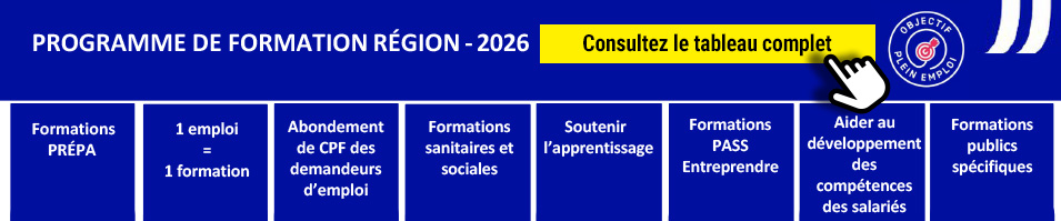 Programme de formation région 2026, symbole lien consultez le tableau complet